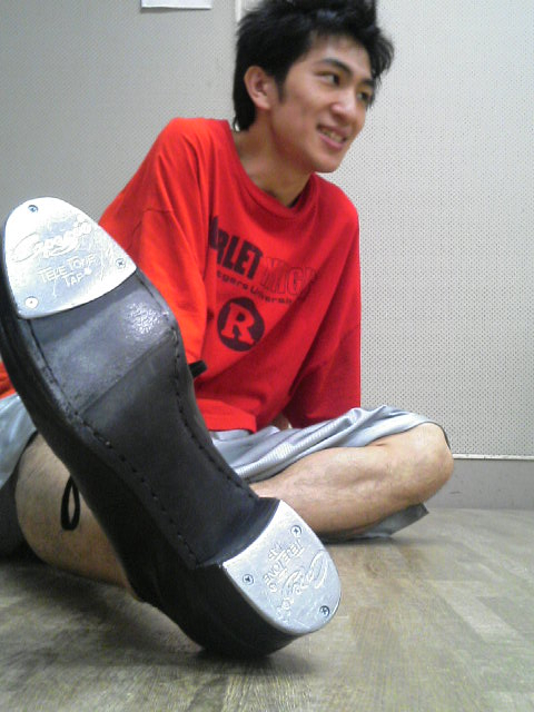 Traveling Soulsの刺客KEITAROくんがいよいよ日本に帰って来ました!彼と初めて出会ったのは、やっぱり今から3年前の2006年7月。場所は渋谷PULG。そう、まさに今回のライブ会場。SUJIくんのソロライブに初めて出させてもらった時でした。クライマックスに突入したライブの最後に、白いシャツをたなびかせてシュッと板の上に登場したKEITAROくん。一方、案の定タップ初舞台で完全にテンパりきっていた私は、挨拶もままならない状態のままSUJIくんとKEITAROくんのアツいセッションを入口の影からこっそり観ておりました。そのときの残像は今でもはっきりと覚えています。そしてそこから3年後の昨日、改めてKEITAROくんと握手を交わす事が出来たのです。こうして4人が揃い、ライブに向けてのリハーサルがいよいよ本格化してきました。とその前に、SUJIくんとKEITAROくんは来月行われるナショナルタップディに出演します。そのリハーサルも着々と進んでいるようで、そんな二人のリハーサルをチラ見したり。ふむ。やっぱり踊る男性の力強さはかっこいい。あの説得力は絶対女性には出せないものだものね。な~んて、生き物の違いを再認識しつつ、ないものをねだってみたりしながら女一人、スタジオであぐらをかいて考えるのでした(笑)。つづく。