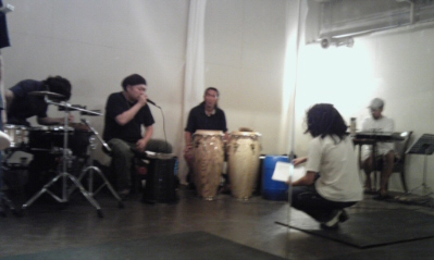 はい。今回もやってきましたTraveling Soulsリズム相談所。深夜の代々木にリズムが響きます。今回は前回よりもよりシンプルな編成となっているでしょうか。ダブルパーカッションに、ヒューマンビートボックス、そしてキーボード。音楽的なリハーサルの進行は、今まで私が経験してきたダンスリハーサルのそれとは勝手がだいぶ違くて勉強になります。始めは、とにかくあの短い時間で形にしてしまうことに驚きました。みんなで音を出したとき、大事なのはきっと、己の耳と、センス。一歩違えば全く違ったものへとなってしまう。そいえば昔、クラブなんかのショータイムで音源が良く止まってしまうトラブルがあったもんだ。慌ててMCが繋いだりするけど、流れがストップしたその場のしらけムードを回復させるのは、観てる方もやってる方もなかなかどうして厳しかった。本番中に音源が止まるなんて絶対にあってはならない事だった。おや?タップダンスしかり?話がそれたけど、ともかく音楽が創り出す空気の重要性を言いたかっただけ。一度始まってしまった時間を止める事は出来ない。間違えちゃったからごめんなさいでは済まされない重要な空気の流れを音楽は担っているという事をリハーサルを通して改めて感じました。そしてタップダンスをやる自分にも、この事をしかと肝に銘じたのでした。2009.9.20 Traveling Souls~NEXT LEVEL~ 仕掛け人SUJI TAPに同じ瞬間は二度とありません。今回もまた秘策とともにかましてくれます!私自身もNEXT LEVELに行けるよう、頑張りたいと思います。