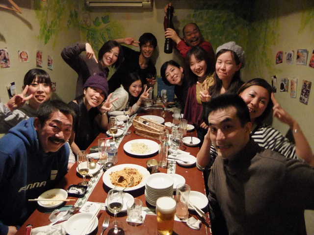 毎週土曜日代々木ANCEにて行われているRHYTHM TAP入門クラスが始まって二回目の年末を迎えました。え?まだ二回目!? そんな気がしてなりません。当時、全く踏めないと言ってクラスに現れた人も、今ではびっくりするくらいタップしています。そんな彼等の姿を見ていると、あぁ、人って成長するんだなぁ…と、その仕組みに驚くばかり。それぞれのスタンスでそれぞれに悩みを抱えながら、それぞれのタップダンスがある。ダンスって?音楽って?タップって、何だ? そんなことをいつも語り合いながら、それぞれが練習方法を模索し、それぞれのタップダンスに向かっています。まさにココは『入口』。常にそれぞれが放射線状に進んで行ける場所。そしてその先に何かを発見出来る場所。そんな場所であって欲しい、いつもそう思っています。もちろん、自分にとっても。そしてまた私は、そこで出会う彼等との会話の中に『必然』を感じ、だからこそ自然のままに語り合う事が出来、そして共に前進する事が出来るのだと改めて思うのです。来年もまた、時に足が吊りそうになって眉間にシワを寄せながら(笑)、色んな事に興味を持ち、疑問を持ち、模索しながら進んで行きます!パスタ、おいしかったね!!