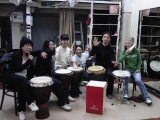 スペシャルゲストに よしうらけんじさんをお迎えして開催されました、2009年ラストタップダンス部打楽器祭り。タイコがこんなに集まりました!とにかく叩いて踏んだ4時間は、あっという間に終わってしまいました。この、古い中目黒マンションの地下から、ドンドコとリズムを轟かせてやりました。こういう練習を、みんなと遊びながら出来たらいいな…と思っていた事がだんだん形になってきて、私はなんだかとっても嬉しいです。結局なんだかんだ言っても、やってみなけりゃわからない。追っ付かないのは体であって、そりゃぁ回数重ねなきゃ体は覚えないってもんで。だからまずはやってみる。出来ないのは、みーんな同じ。やって、聞いて、とっちらかって、またやって。そんな自分を指差して笑えるくらいが丁度いい。今日はいっぱい笑ってやりました!また来年も開催します。定期的になりそうな予感です♪2010年のタップダンス部スタートは1月11日(月)から。2010年もまた、試してみたい事、練習したい事、普段の一人練ではなかなか練習出来ない事を、ぜひココでどんどん試してみて下さいね。あなたの練習が、みんなの為になります。こりゃ一石二鳥。よし!